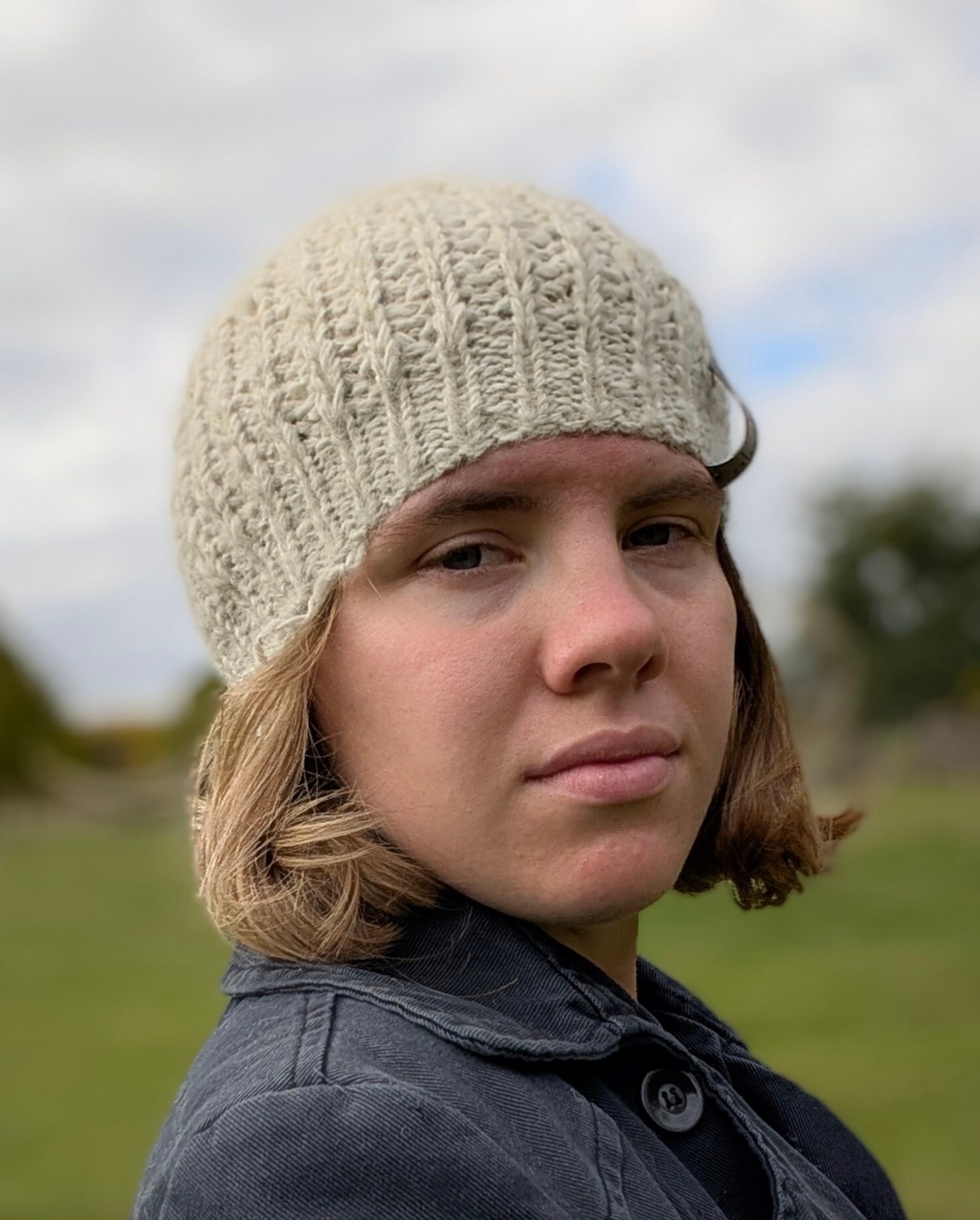 Modelka ma obwód głowy ok. 58 cm. Czapka była na nią trochę ciasna.