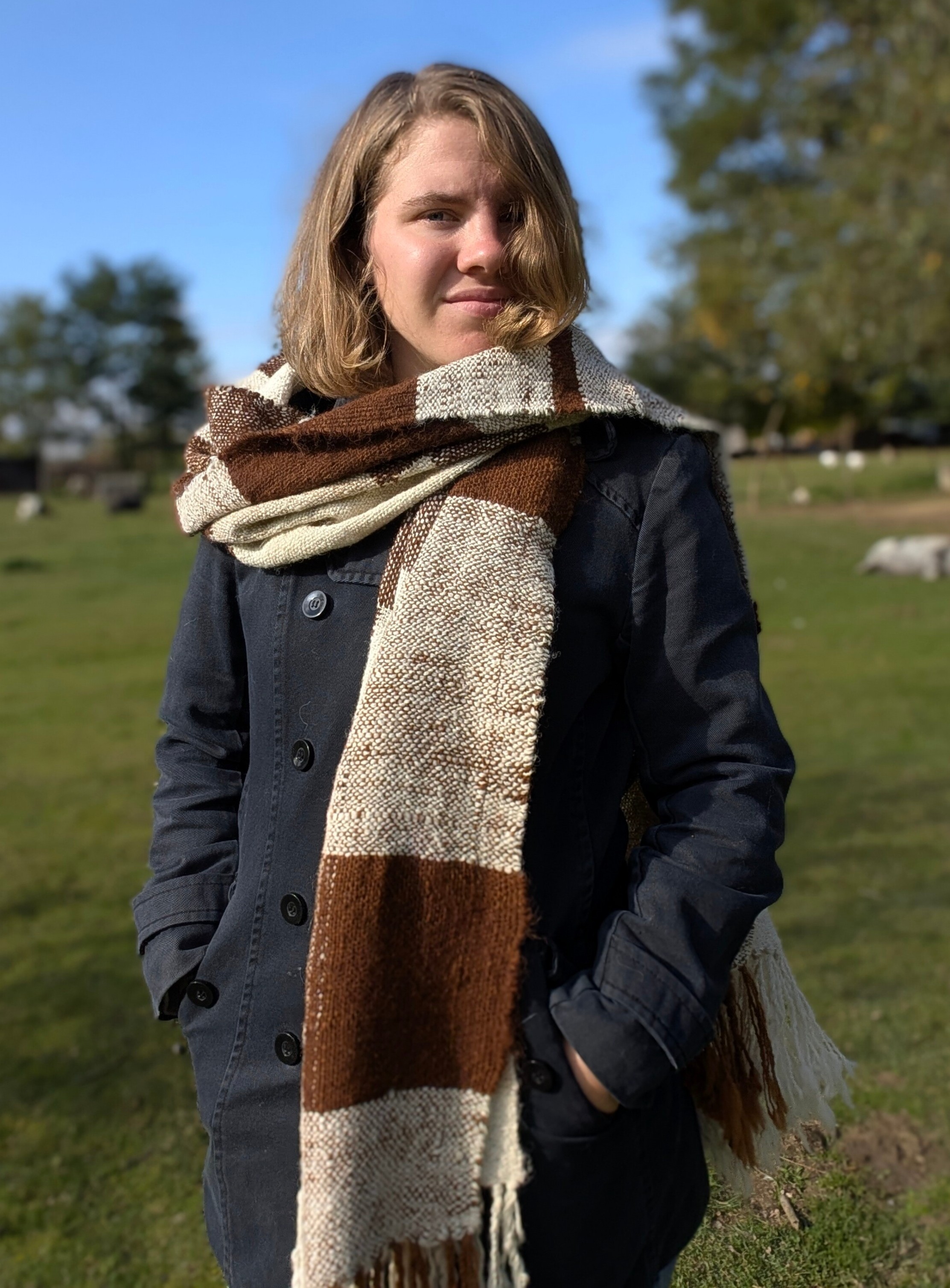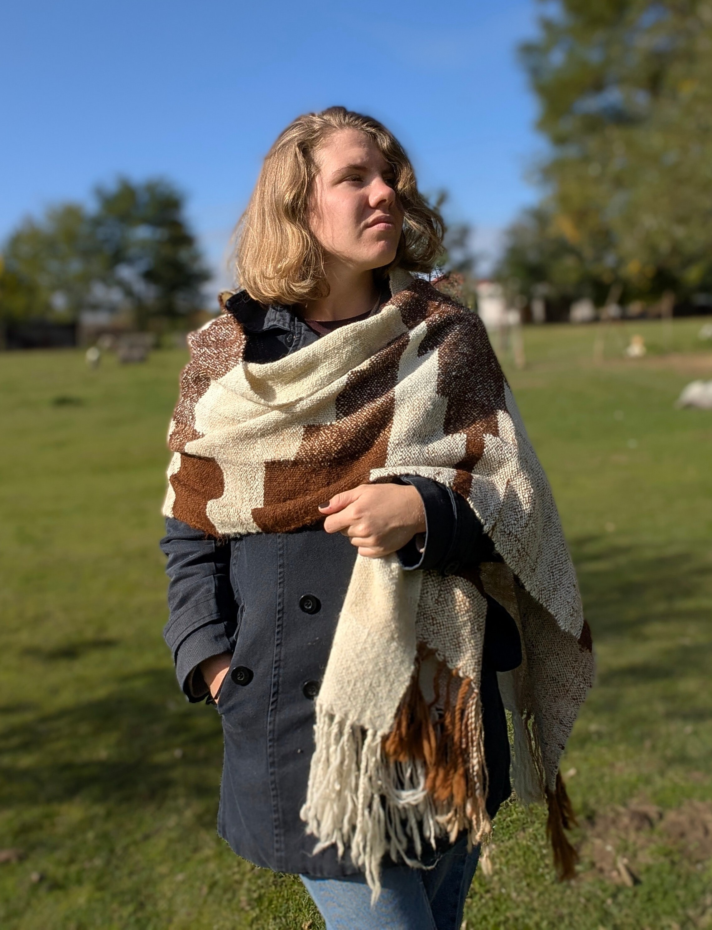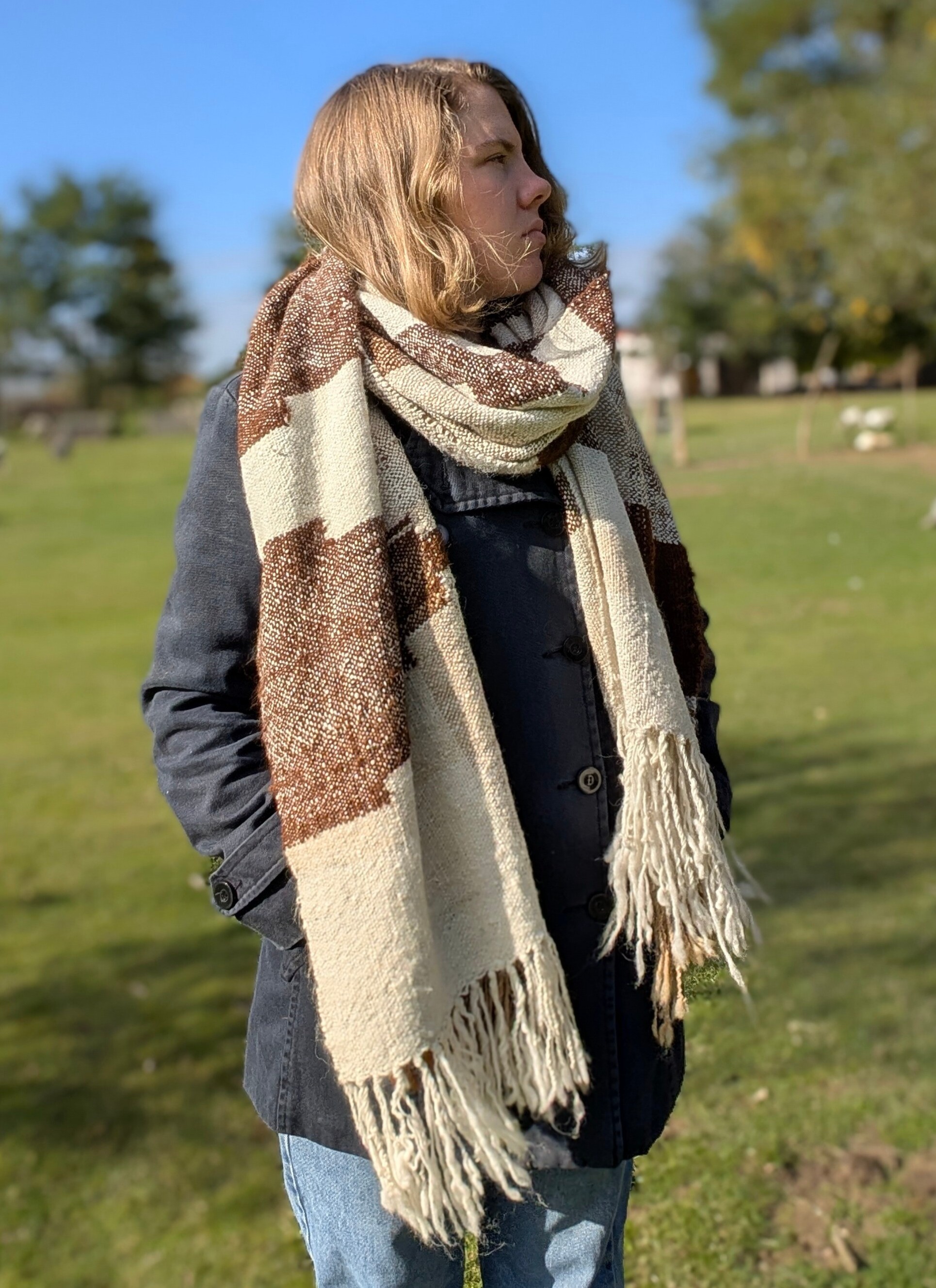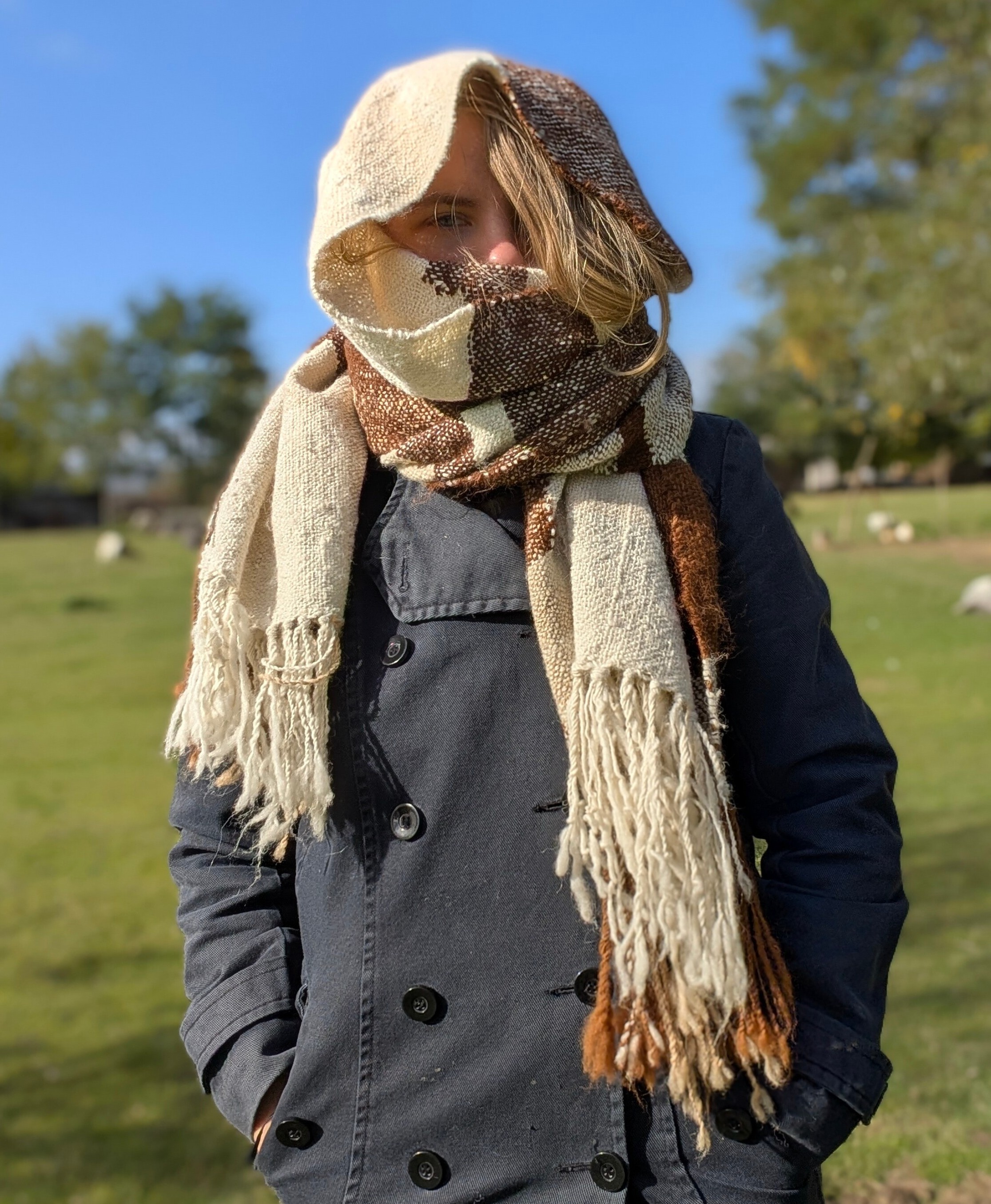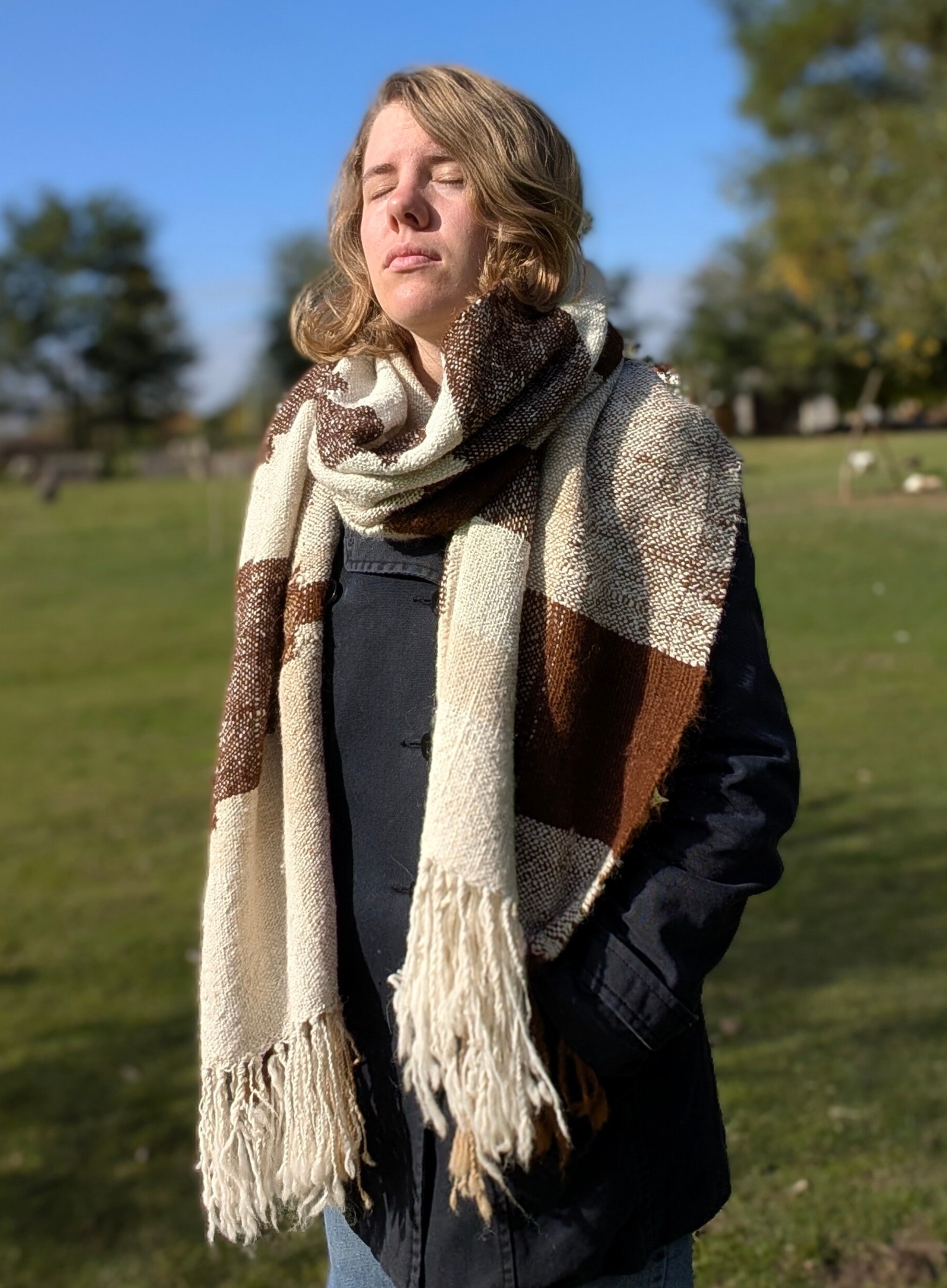 100% handmade - tkany z włóczki własnoręcznie przędzionej na kołowrotku.