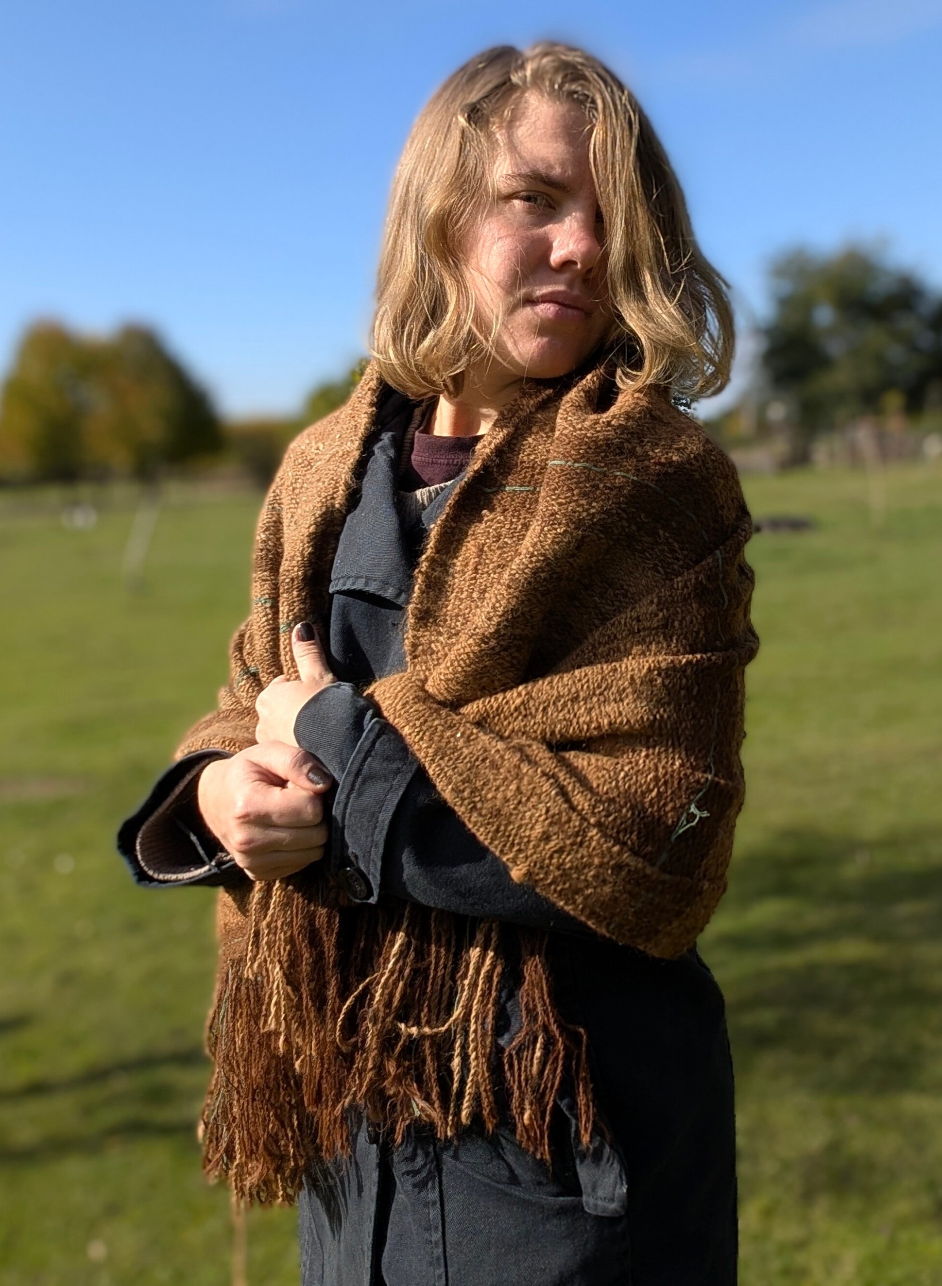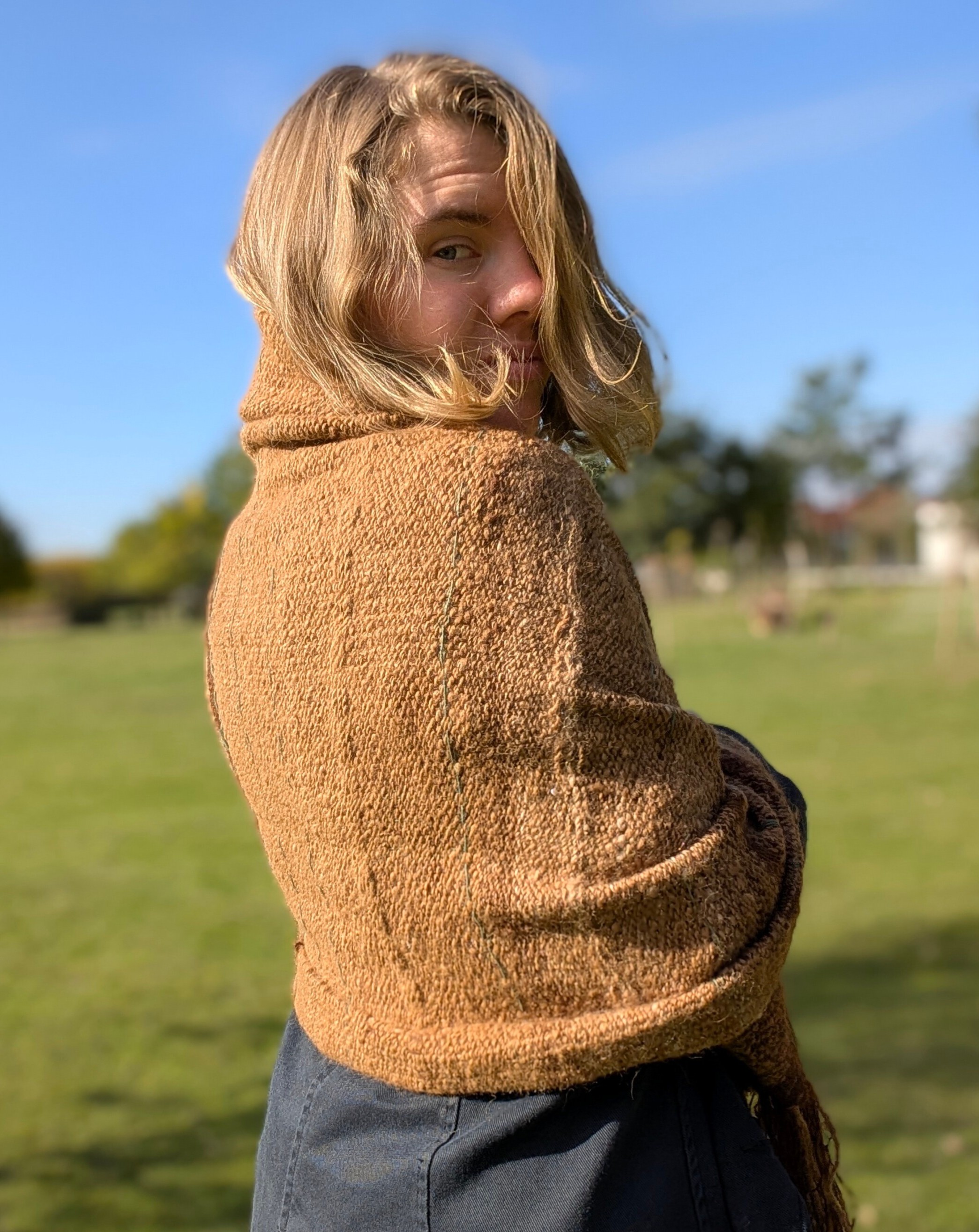 100% handmade - tkany z włóczki własnoręcznie przędzionej na kołowrotku.