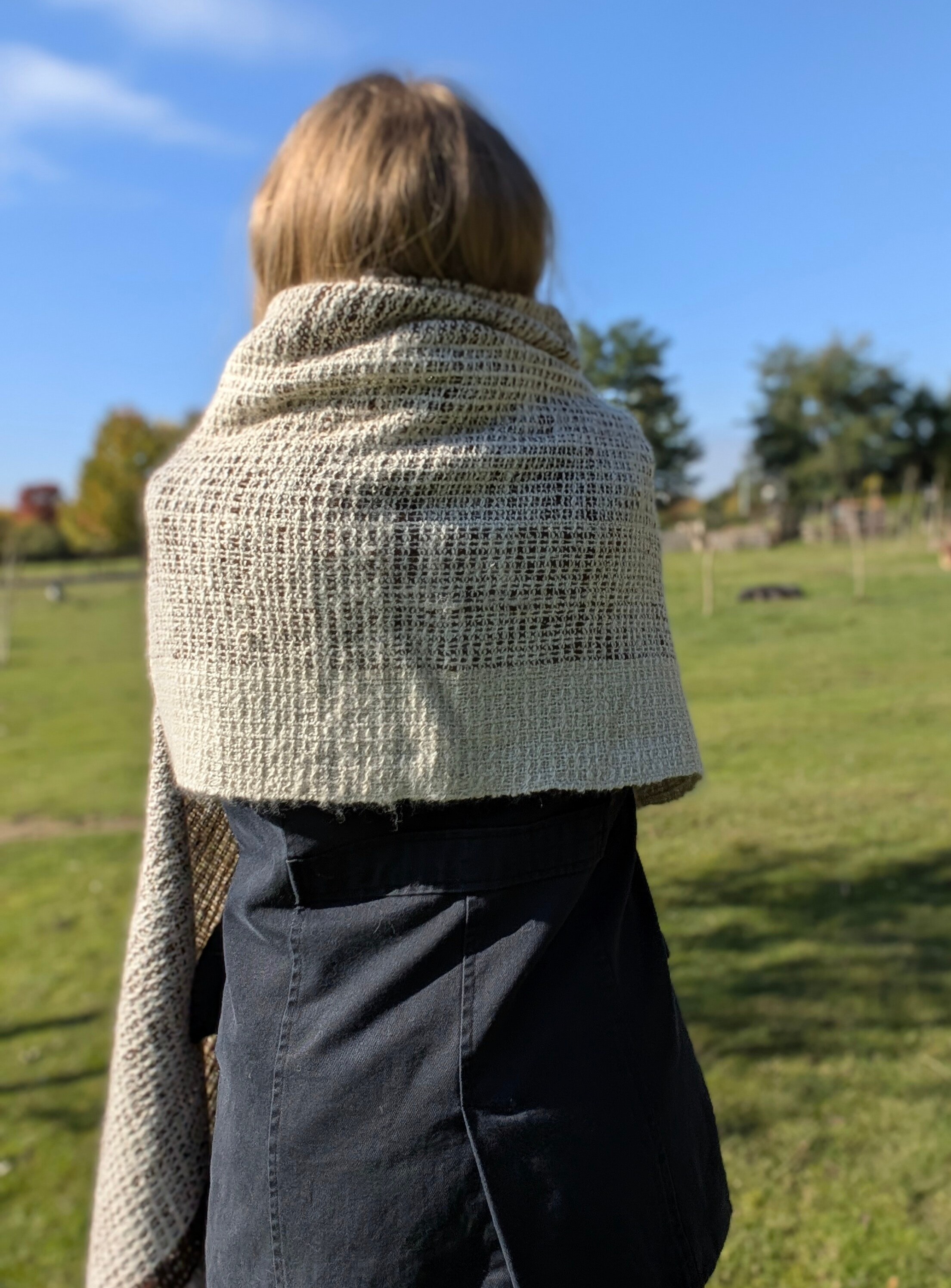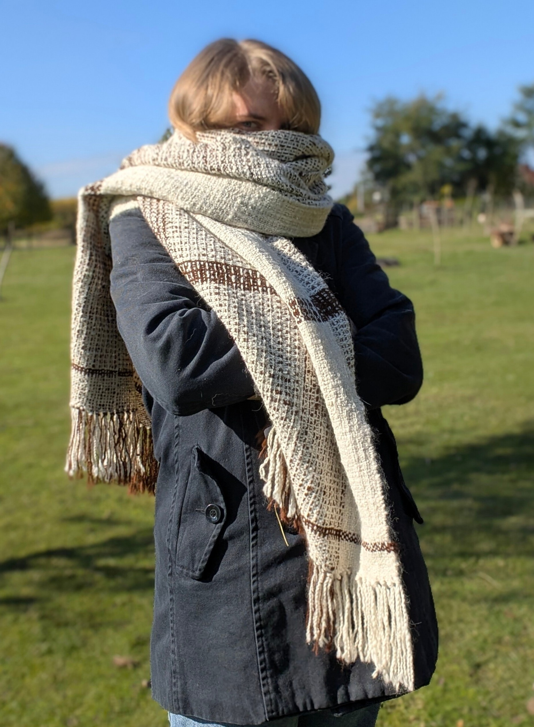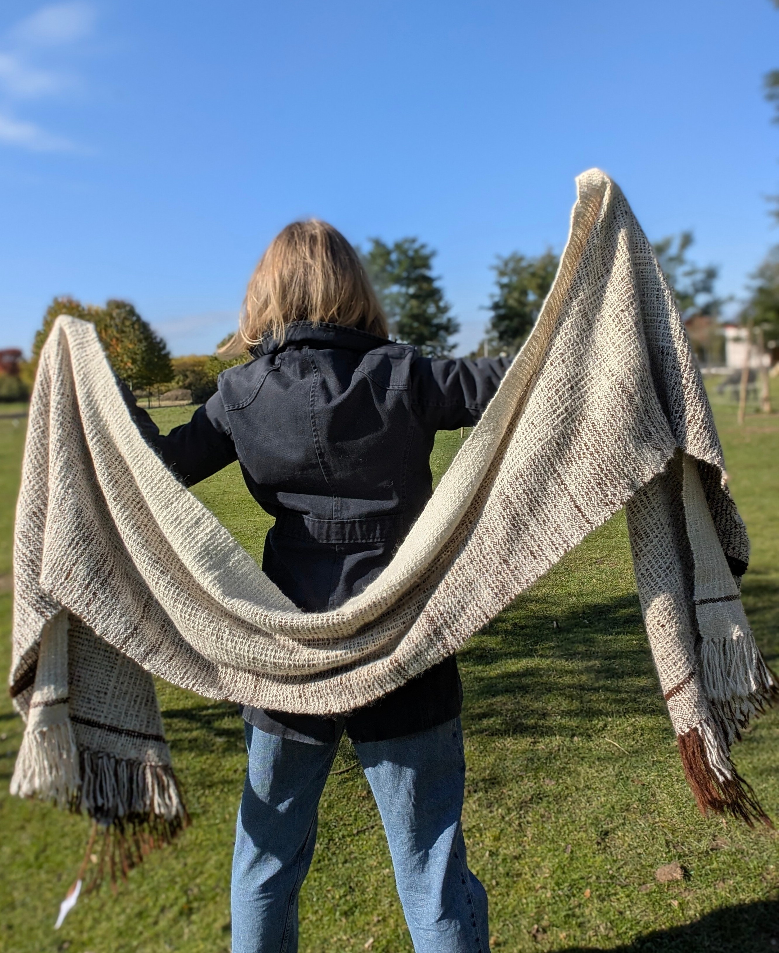 100% handmade - tkany z włóczki własnoręcznie przędzionej na kołowrotku.