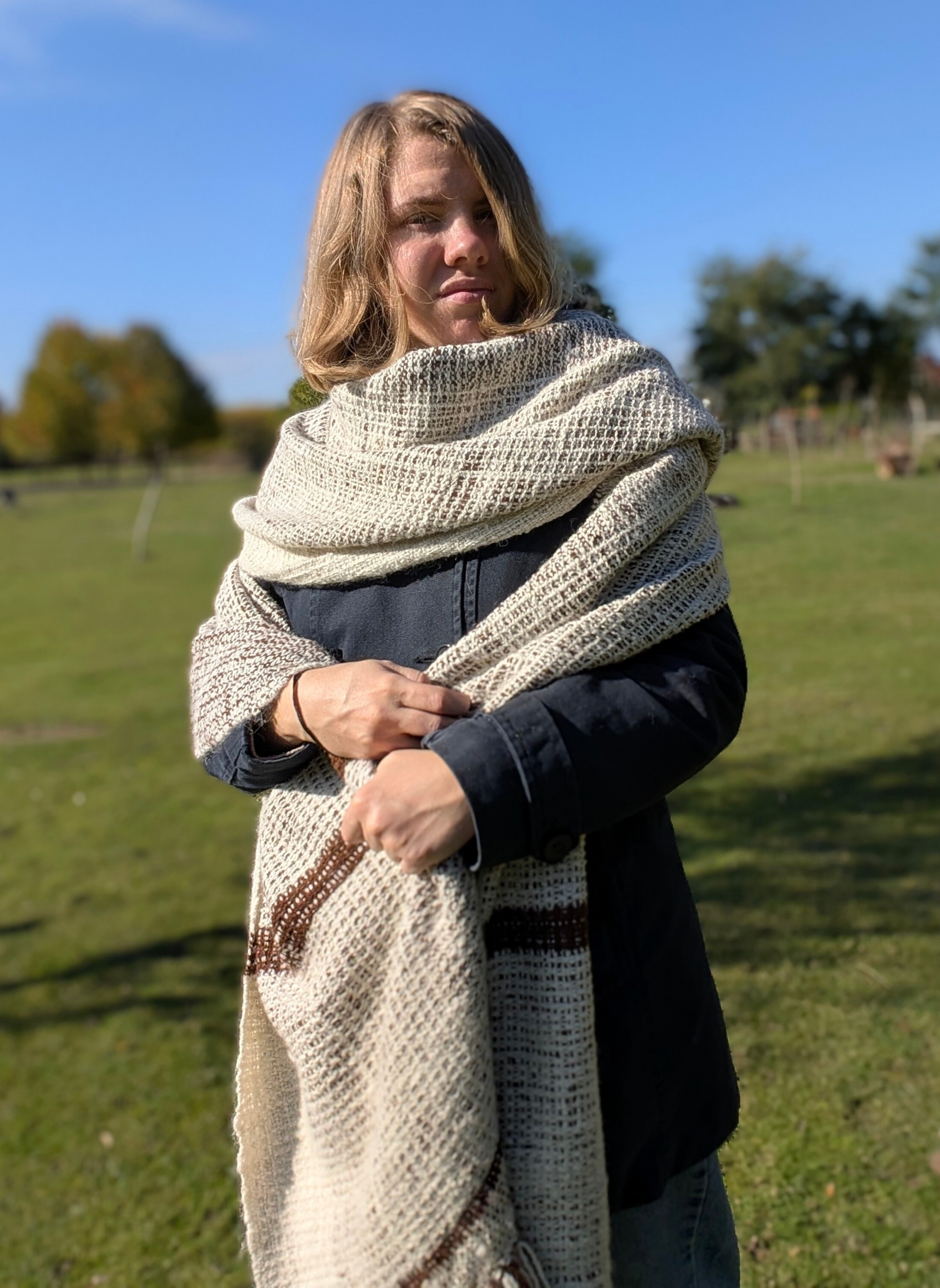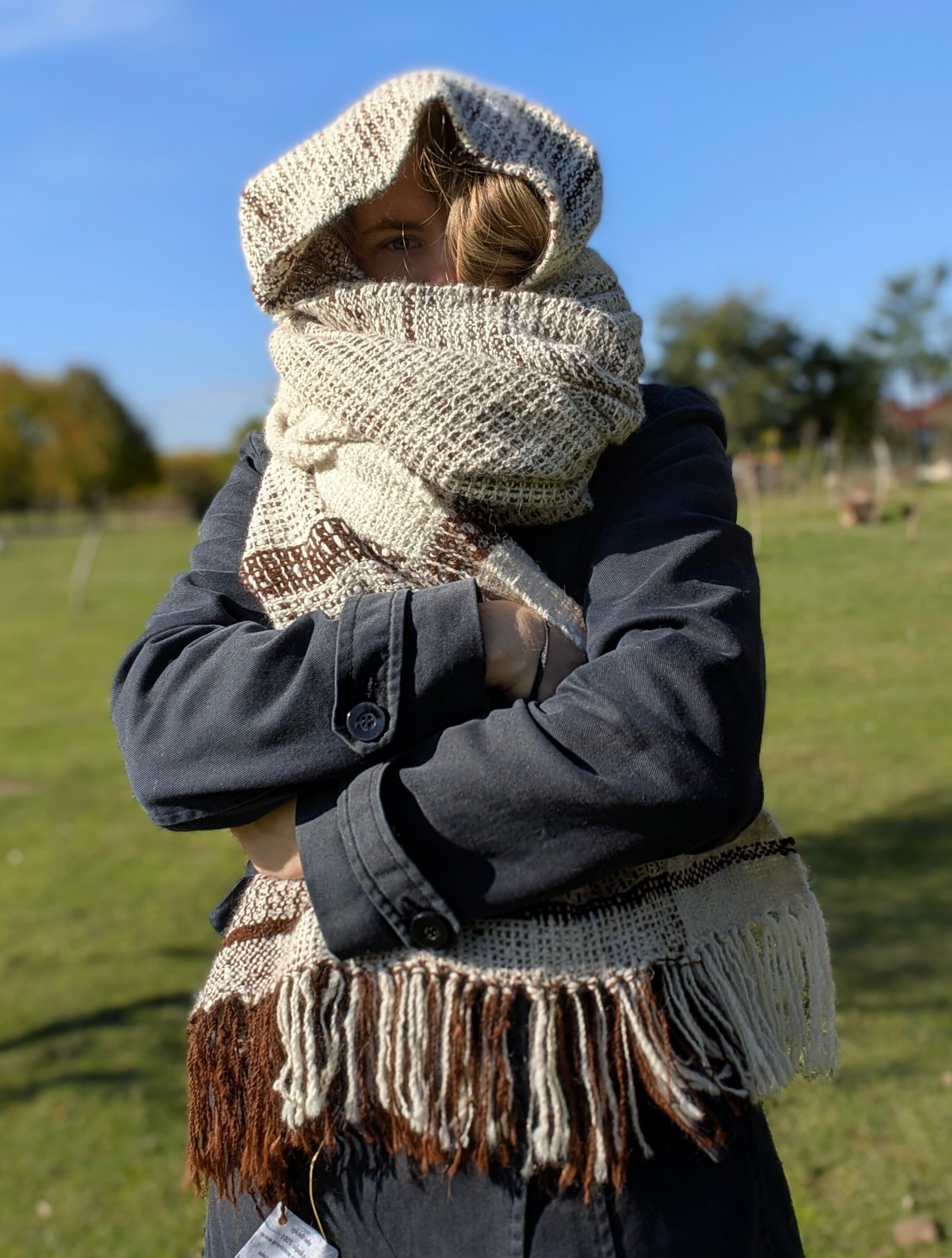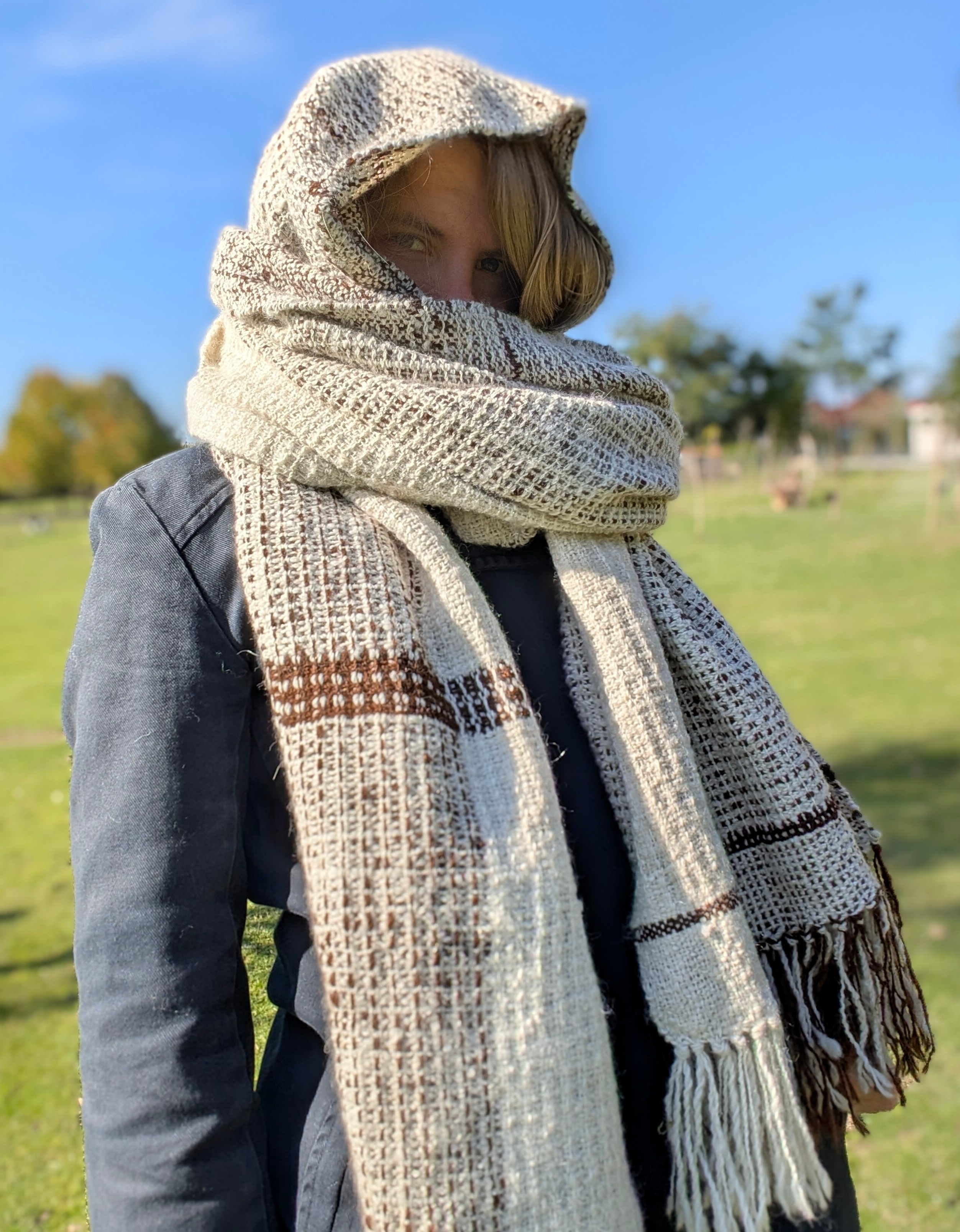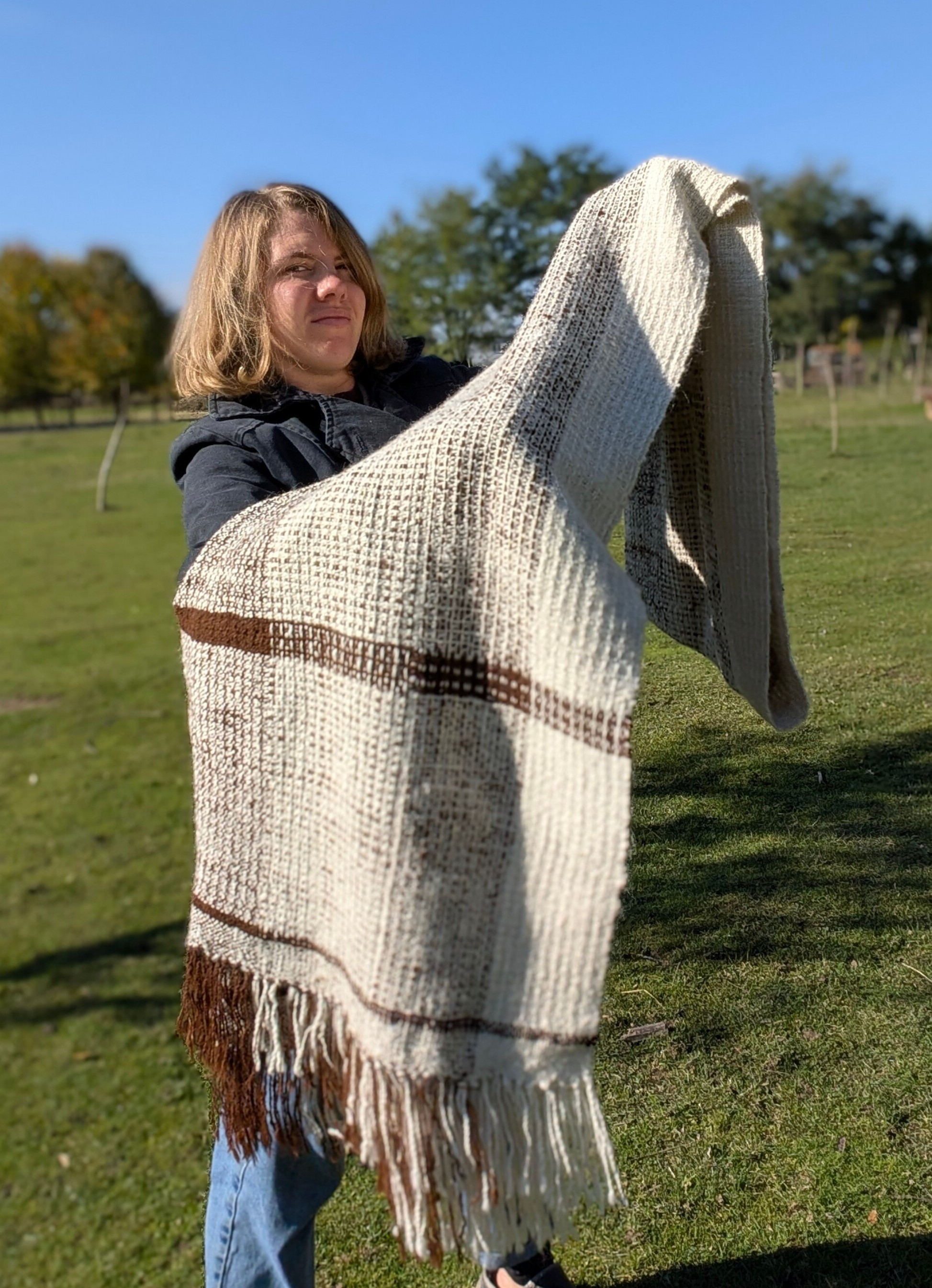 100% handmade - tkany z włóczki własnoręcznie przędzionej na kołowrotku.
