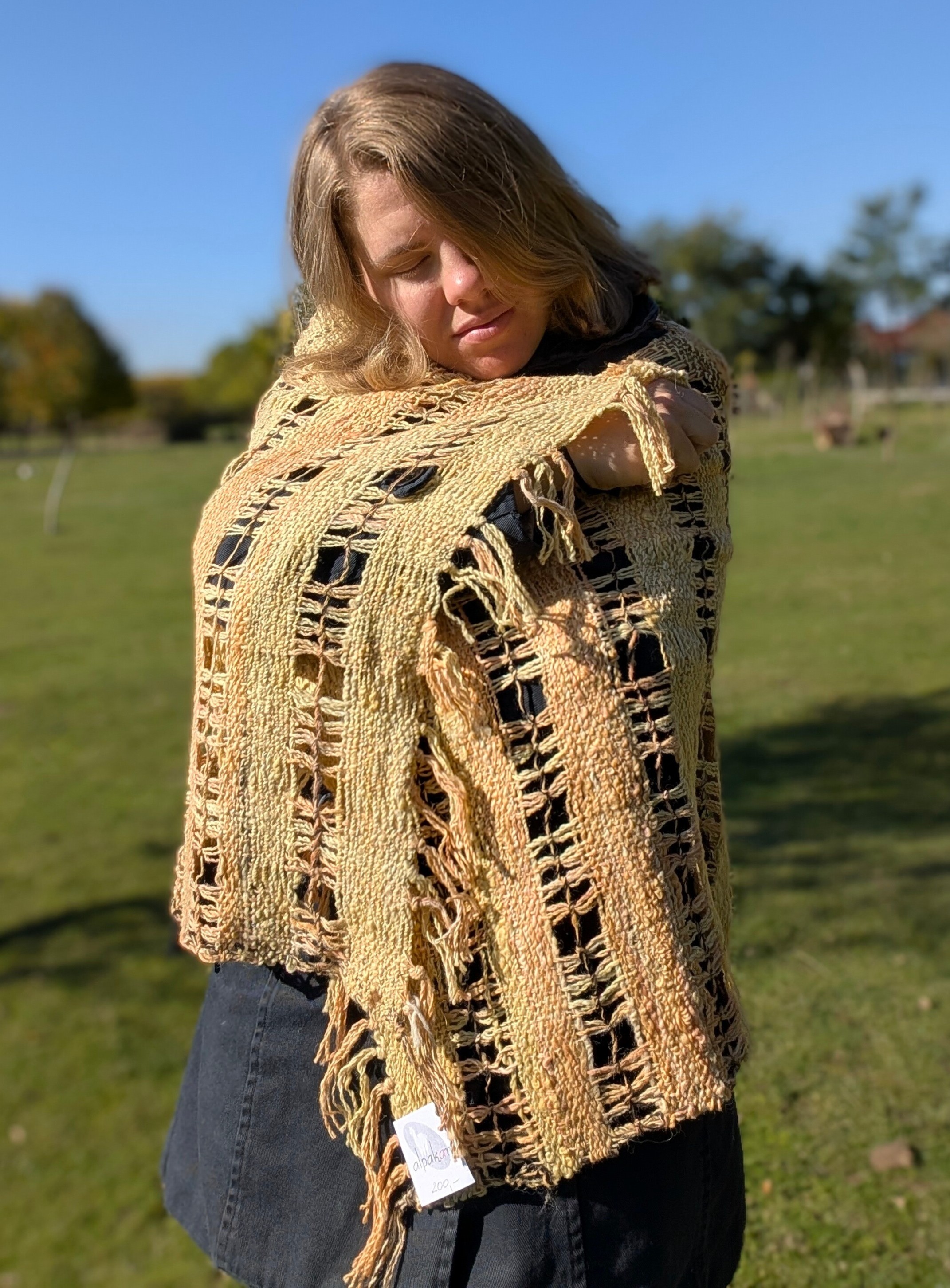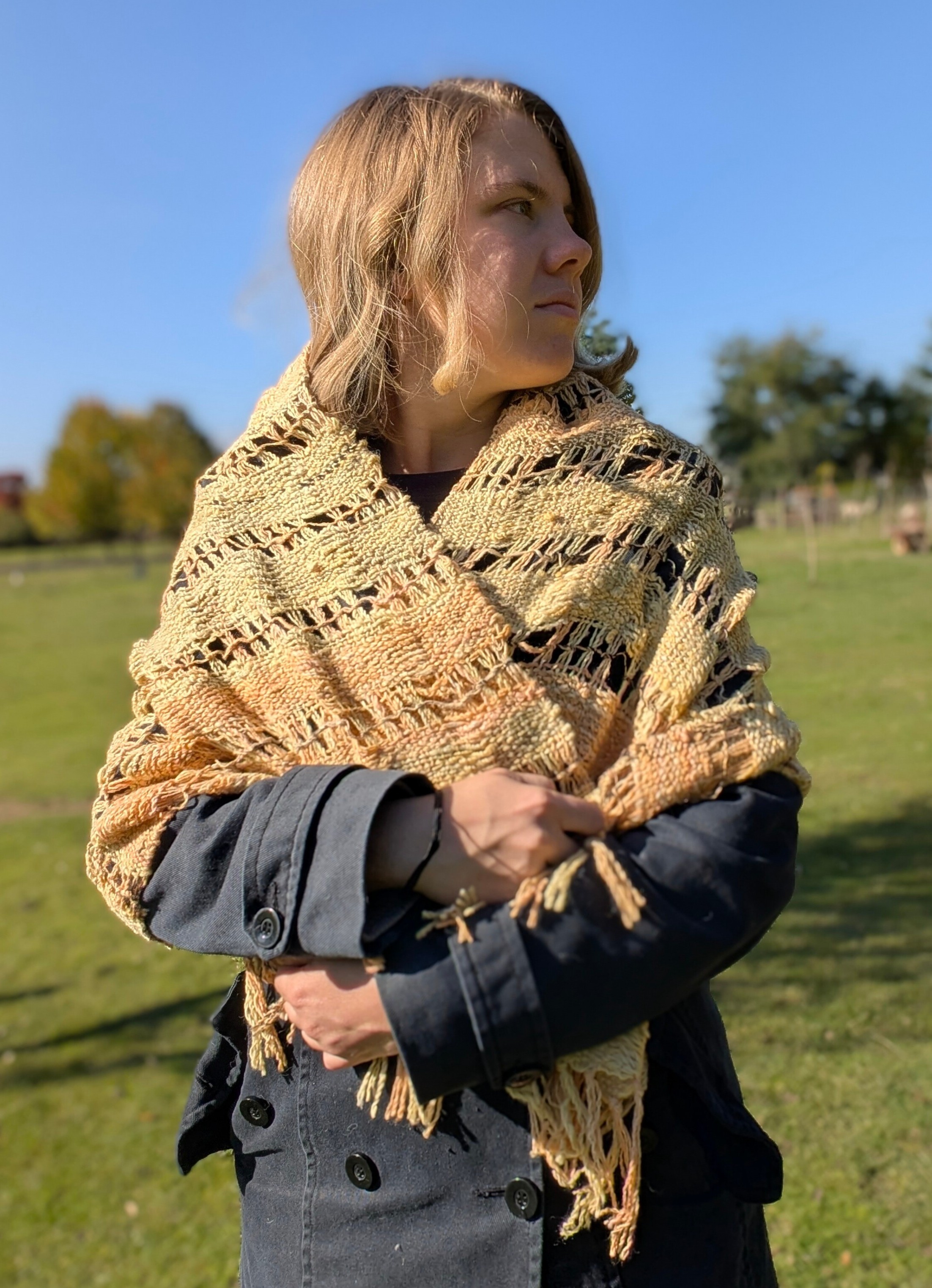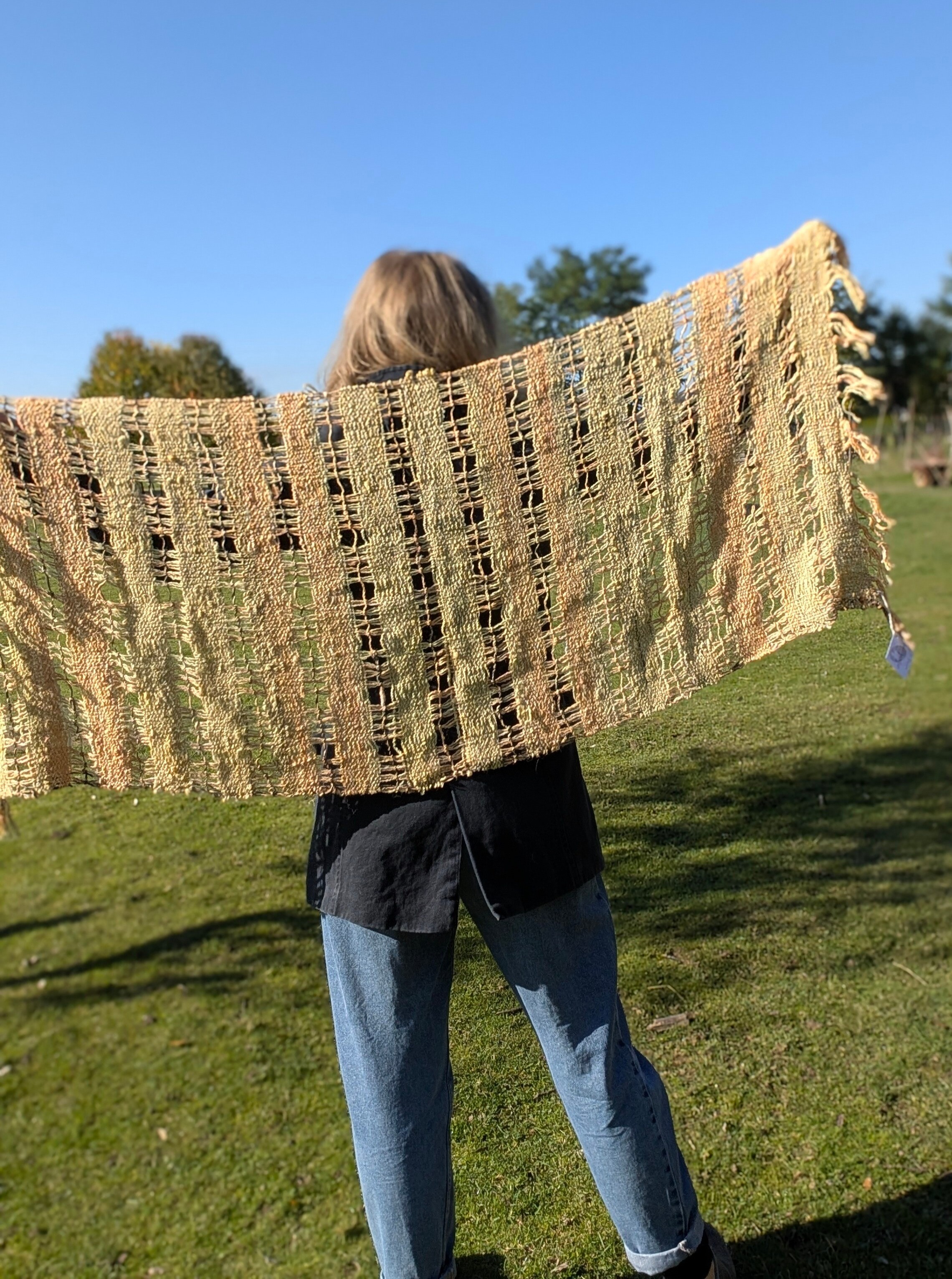 100% handmade - tkany z włóczki własnoręcznie przędzionej na kołowrotku.